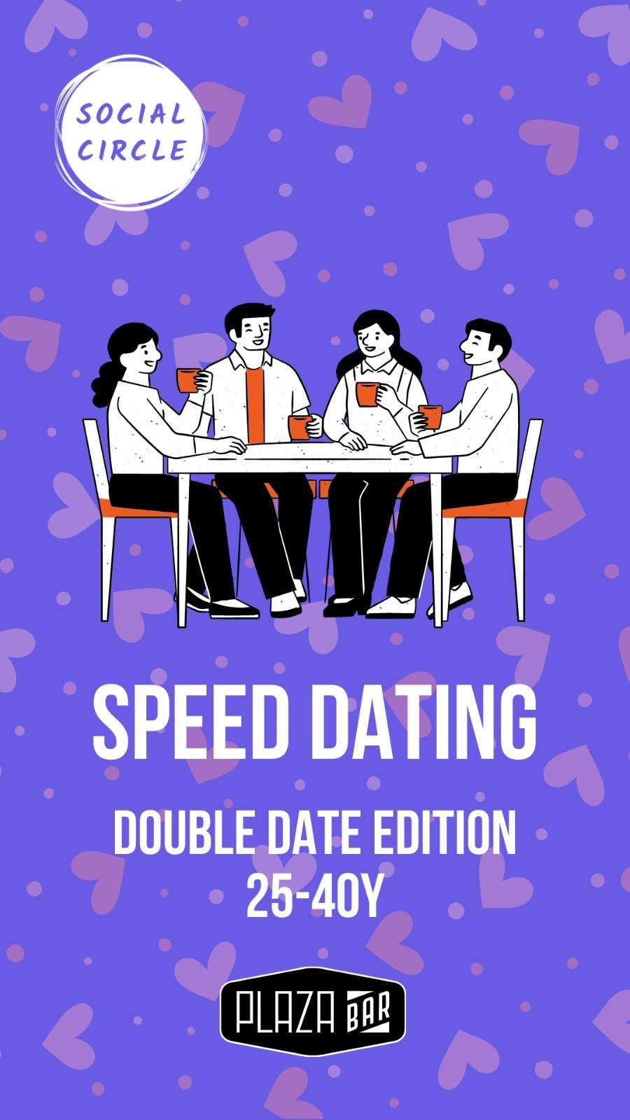 Less pressure. More real chemistry.2 single men and 2 single women per table