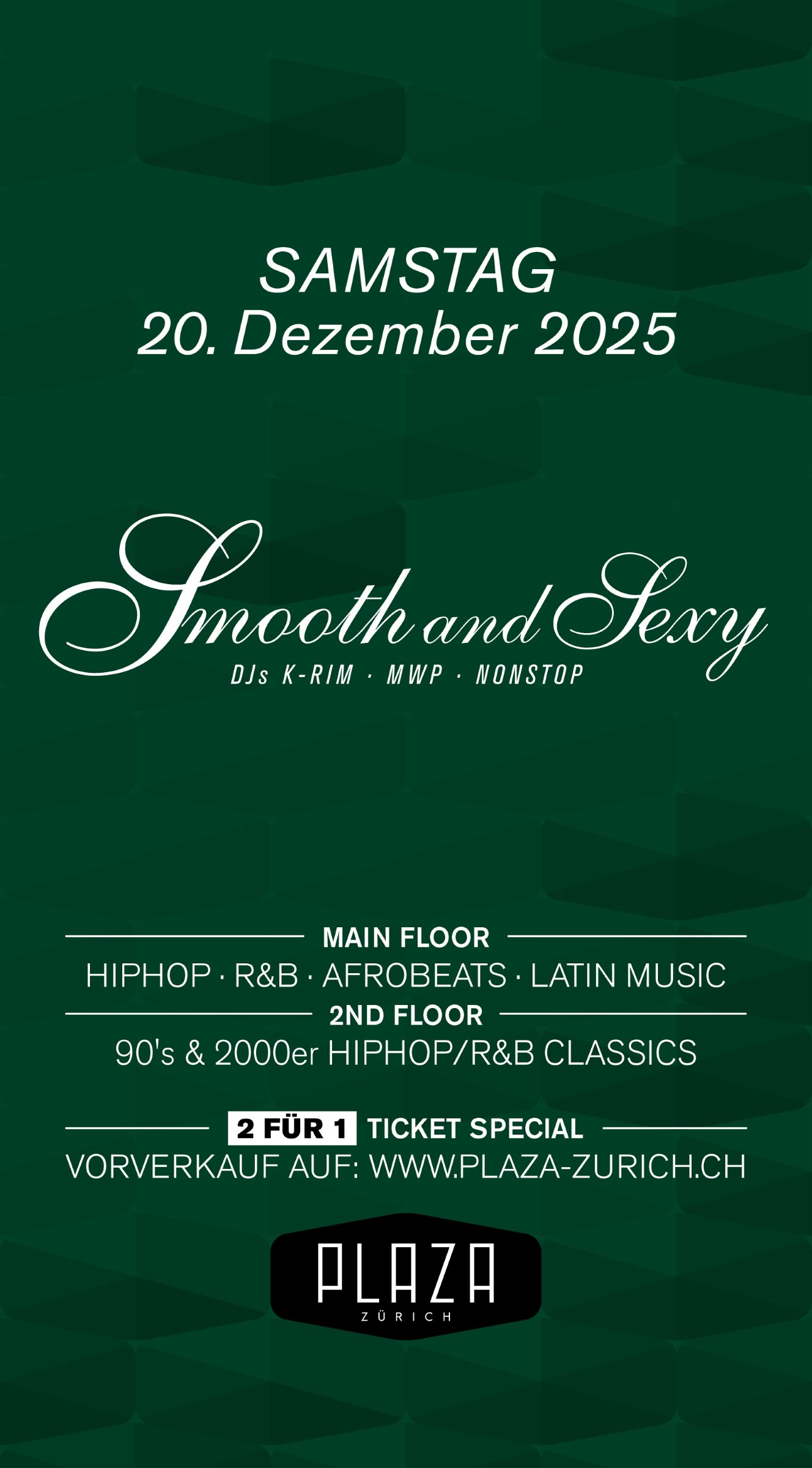 Im Mai geht es mit der Smooth N Sexy natürlich nahtlos im PLAZA Klub weiter und wir freuen uns, euch am angestammten Platz, dem dritten Samstag des Monats, zu begeistern! Die original ladies favourite gehört zu den beliebtesten Partylabels der Stadt und hat mittlerweile Kultstatus erreicht. Dazu beigetragen hat sicherlich auch das DJ-Team bestehend aus K-RIM, Mwp, Nonstop & Oris, welche mit einem phänomenalen Musikmix aus HipHop, R&B, Afrobeats, Dancehall & Latin Music zu überzeugen wissen. In der über 19-jährigen Smooth N Sexy Geschichte konnten wir mittlerweile unzählige positive Erinnerungen schaffen und dafür sagen wir Danke und freuen auf die Nacht des 17. Mai 2025, wenn das PLAZA wieder heiss ist und smooth and sexy dazu!